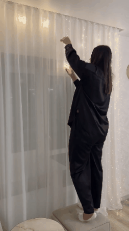 La cortina LED dando ese efecto cálido y mágico que ves en TikTok.